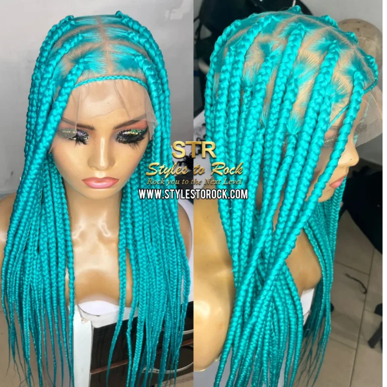 Ready To Ship: Full Lace Jumbo Knotless Braid Wig – SUMMER – Sky Blue #1